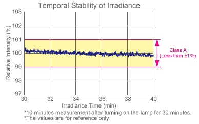 | Temporal stability of irradiance (%) | </=±1 | </=±3 | </=±10 |